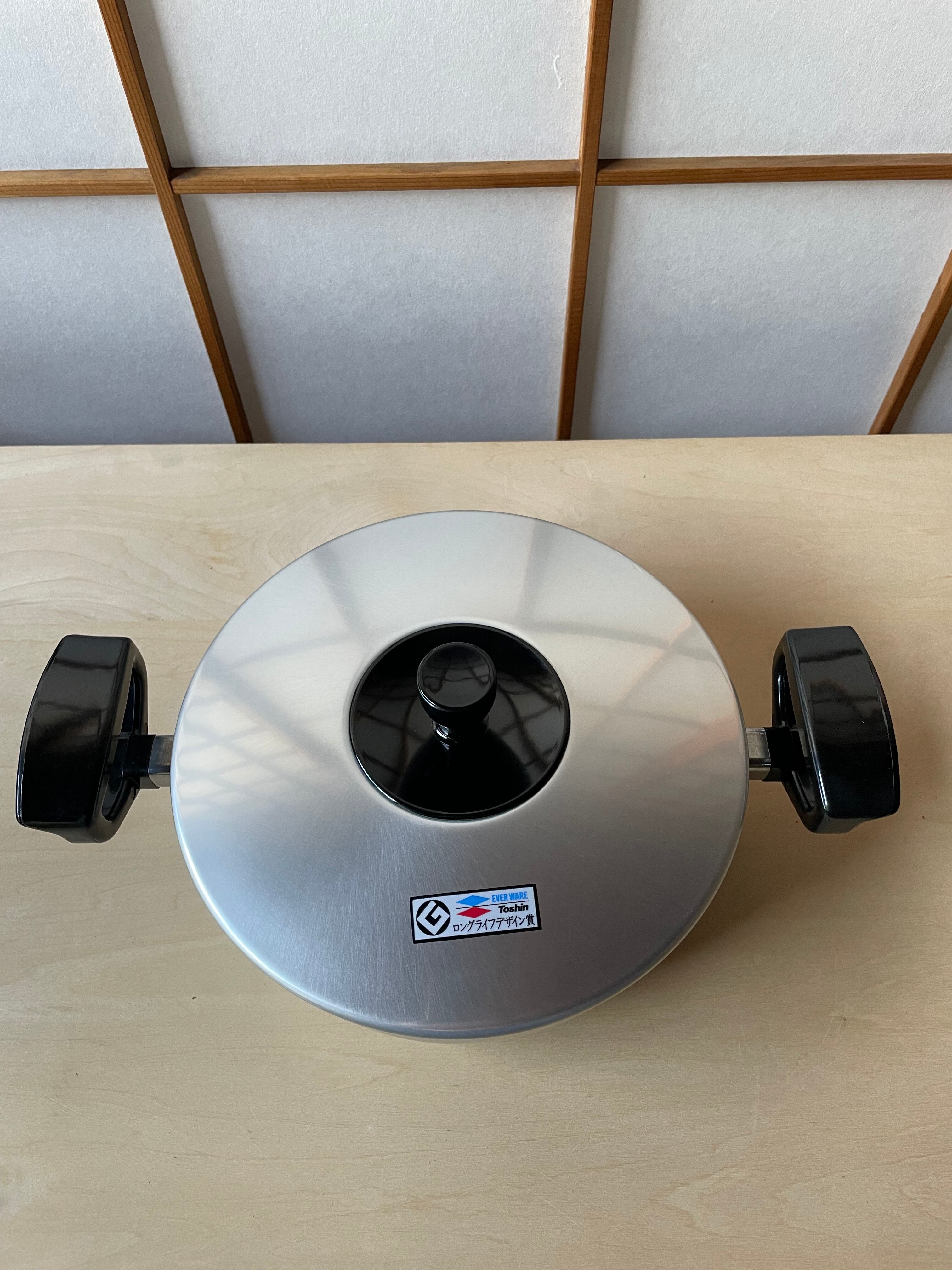 東新プレス エバーウェア シリーズの 浅型卓上鍋 22cm、1965年頃にグッドデザイン賞を受賞したシリーズになります。