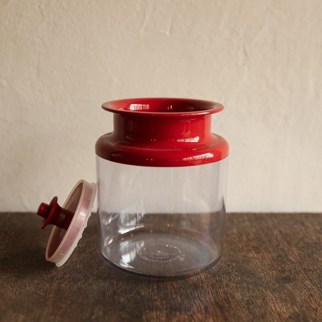 この真紅の蓋がレトロなカラーで希少なデコレータージャーです。