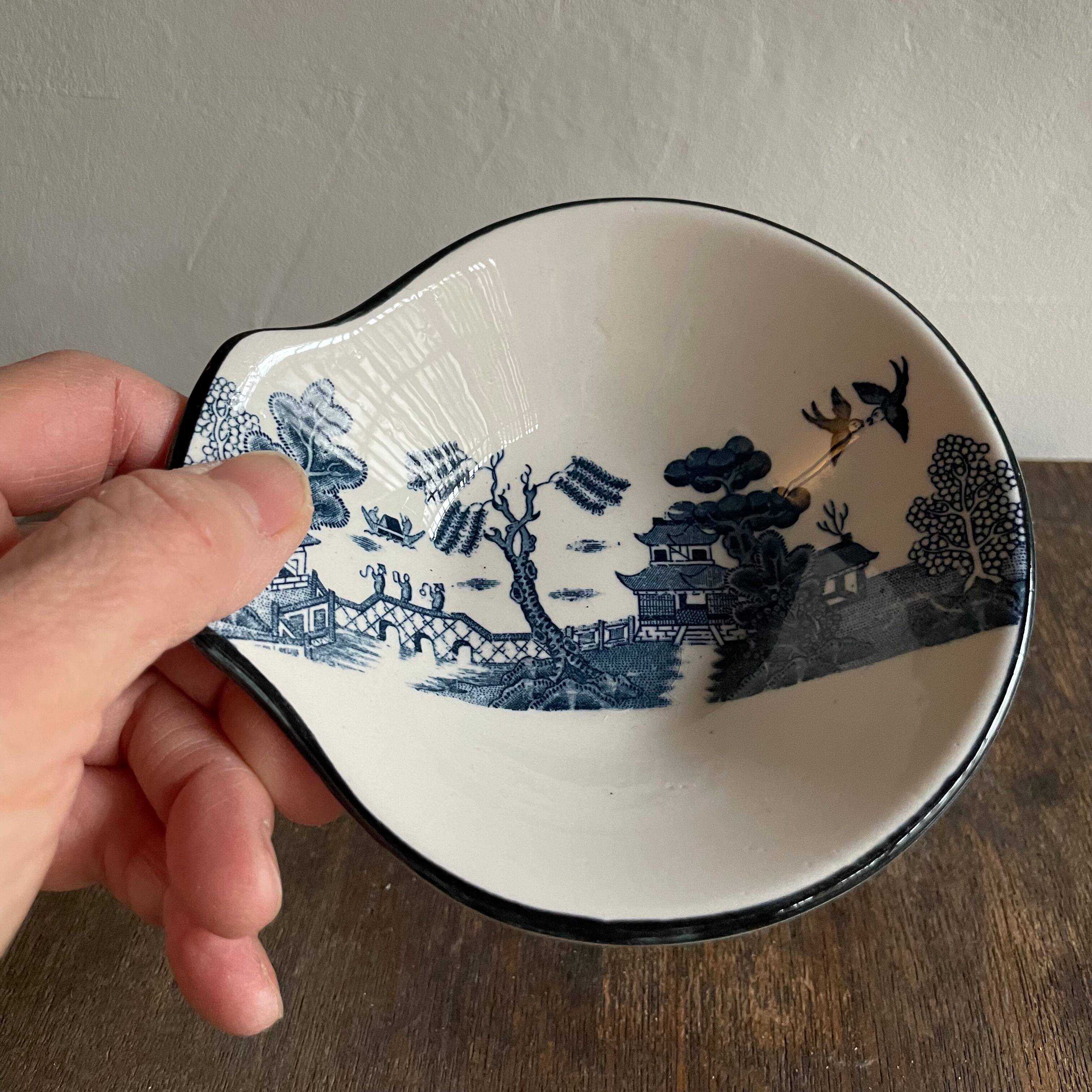 ブルー&ホワイトで描かれているので、ブルーウィローとも呼ばれるウィロウパターンとは、英国の人が中国の風景をイメージして英国の陶磁器に描いた柳文様のことです。