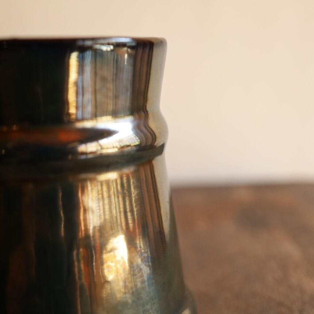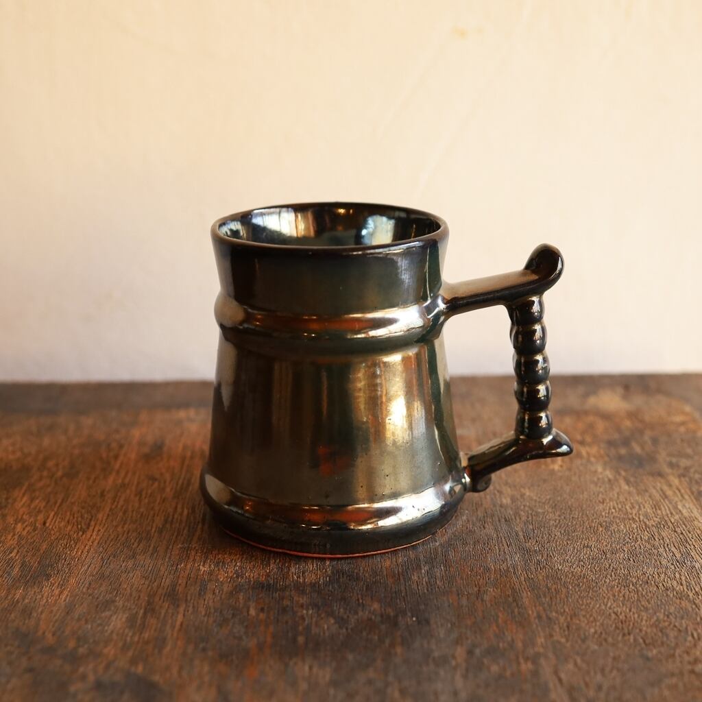 金属的な質感から、イギリスあたりのビアジョッキかと思われましたが、底にJAPANの刻印。