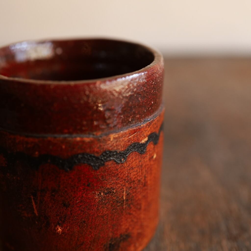 陶器の湯呑み?の胴体部分におそらく革が巻かれています。